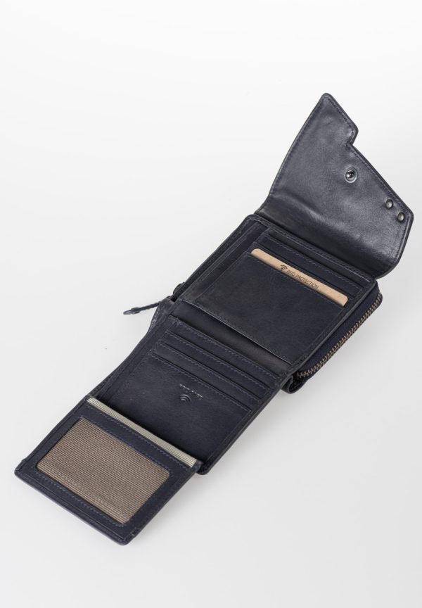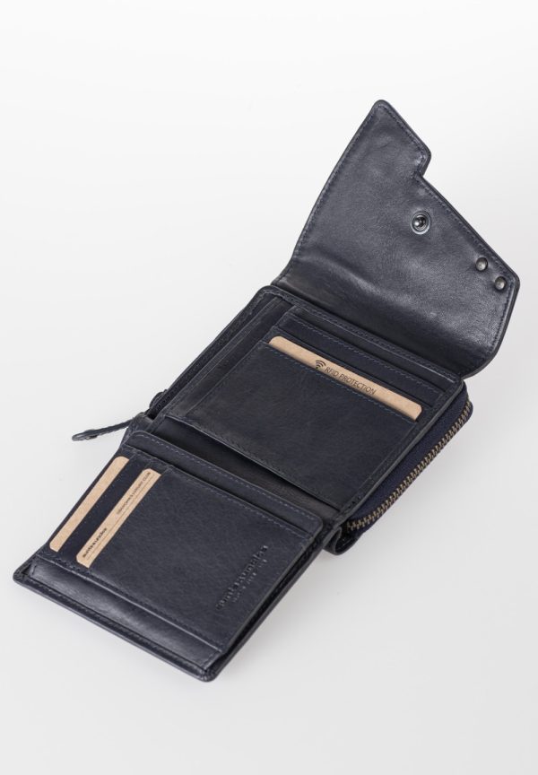 - Geldbörse mit Überschlag und Druckknopf