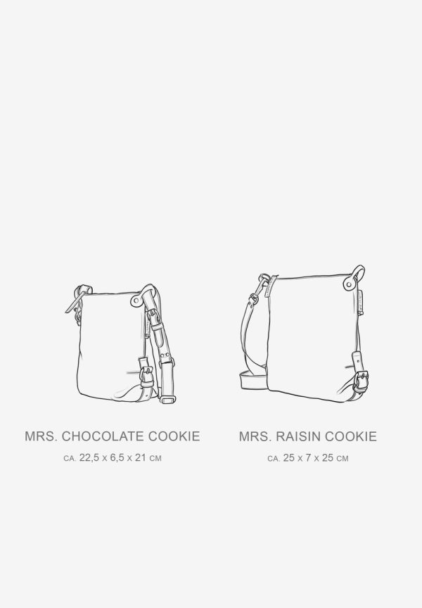 aunts & uncles – MRS. RAISIN COOKIE Mrs. Raisin Cookie ist die etwas größere Schwester von Mrs. Chocolate Cookie und macht ihrem Namen alle Ehre, denn das Leder der adretten Umhängetasche entzückt mit einer, für die Styles aus Grandma’s Luxury Club charakteristischen, knitterigen Optik. Im Inneren schmückt sich Mrs. Raisin Cookie mit einem schlichten, gestreifen Futterstoff und ganz viel praktischer Organisation.