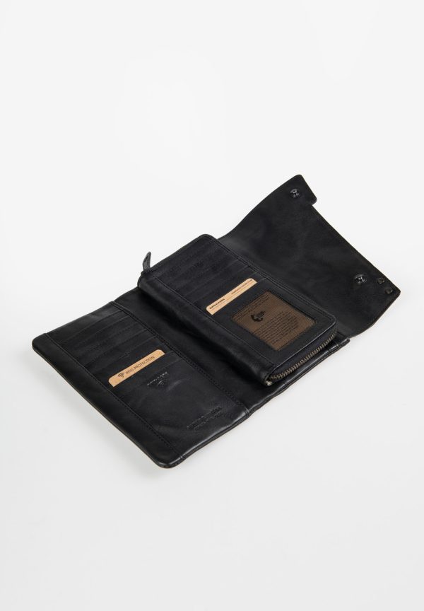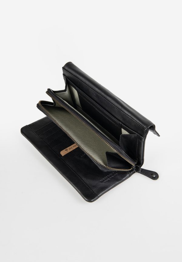 Für alle, denen Lotta zu klein ist. Die große Überschlagbörse Sonja bringt 17 Kartensteckfächer mit, darunter ein transparentes Fach für deinen Ausweis, Fahrkarten oder Erinnerungsfotos. Quittungen und Belege finden in zwei schmalen Steckfächern oder alternativ in einem großen Reißverschlussfach einen sicheren Platz. Für Bargeld gibt es ein Münzfach mit Reißverschluss sowie ein großes Scheinfach. Ein integrierter RFID-Schutz bewahrt deine Karten vor Datendiebstahl. Sonja wird in einer stilvollen Aufbewahrungsbox geliefert.
