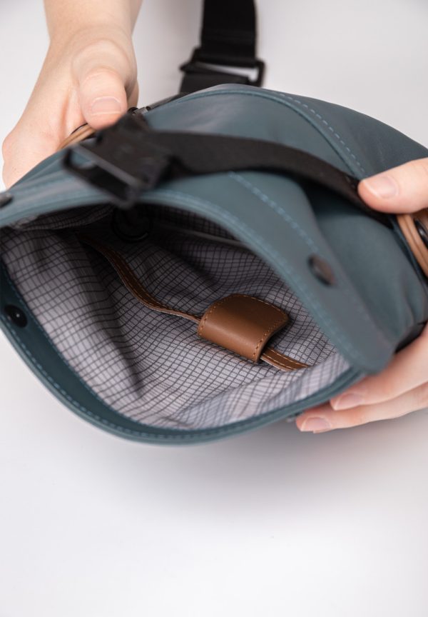- Fach mit Lederlasche und Klett z.B. für Smartphone