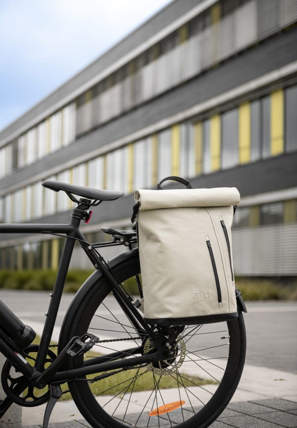 a/u by aunts & uncles – YACHIYO NISHI Yachiyo Nishi ist ein anpassungsfähiger Begleiter im modernen Alltag. Der Fahrradrucksack mit den beiden Fächern auf der Front ist die größere Variante von Sakura Nishi und bietet Platz für Unterlagen in A4 und ein Notebook bis 15 Zoll. Dank des praktischen Rolltopverschluss lässt sich das Volumen von Yachiyo Nishi bei Bedarf auch noch ein Stück erweitern. Für angenehmen Tragekomfort sorgen eine gepolsterte Rückseite und in der Länge verstellbare Gurte, die du in einem Reißverschlussfach verstauen kannst, bevor du Yachiyo Nishi an deinem Gepäckträger befestigst. Das Click-Fix-System versteckt sich in einem Reißverschlussfach. Eine arretierbare Feder und eine optionale, drehbare Sicherung ermöglichen eine einfache und schnelle Anbringung an deinem Fahrrad. Das robuste, wasserabweisend beschichtete Canvas aus Biobaumwolle und die regenfesten Reißverschlüsse von Yachiyo Nishi schützen den Inhalt deines Rucksacks vor Spritzwasser und Nässe.